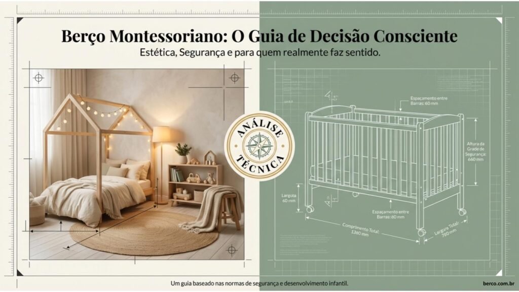 Na prática, o que o mercado chama de “berço montessoriano” costuma ser: