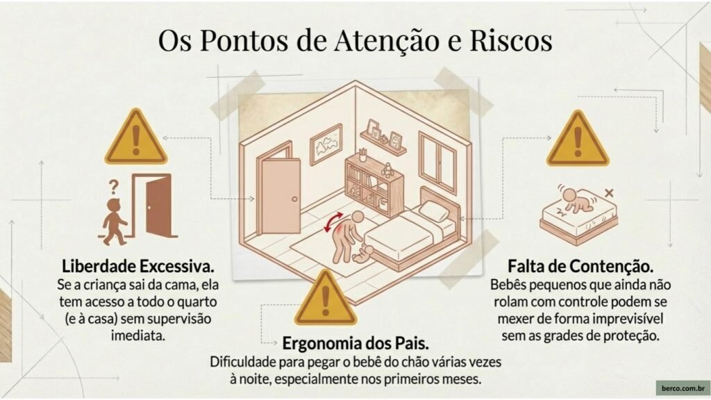 - Dificuldade maior para os pais pegarem o bebê do chão várias vezes à noite.