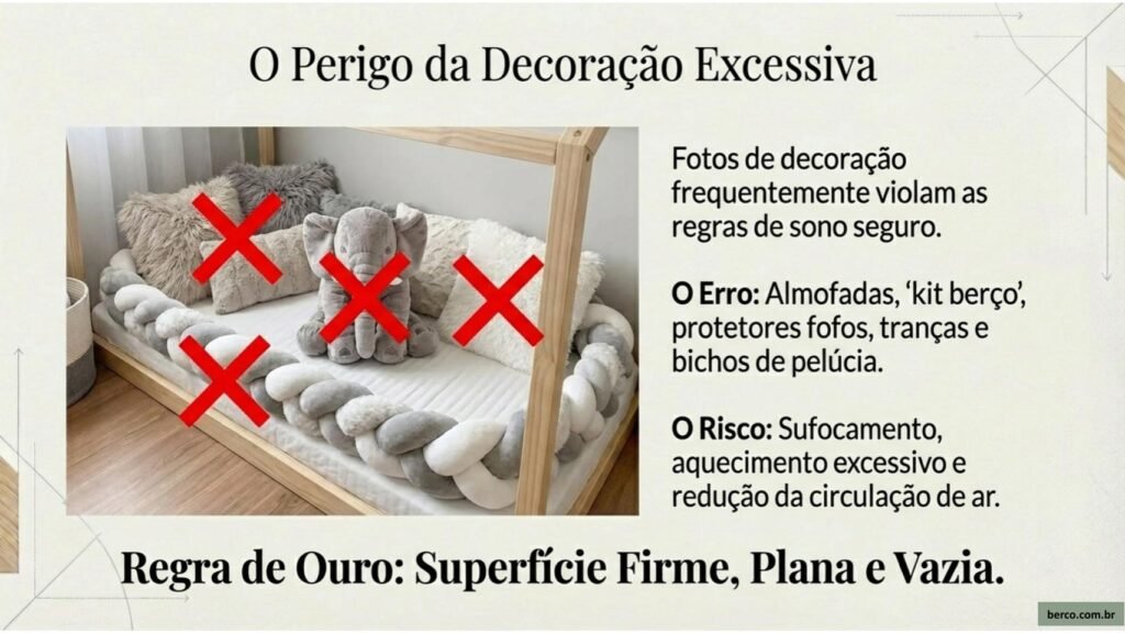 - Almofadas e protetores fofos podem aumentar o risco de sufocação e de aquecimento excessivo.