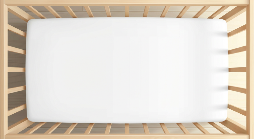 Prefira colchão certificado, com densidade adequada à idade do bebê, firme e do tamanho exato do berço. Evite colchões muito macios ou adaptados. No enxoval, menos é mais: lençol ajustável, capa impermeável e mantas leves bastam. Almofadas, protetores altos e enfeites devem ser evitados.