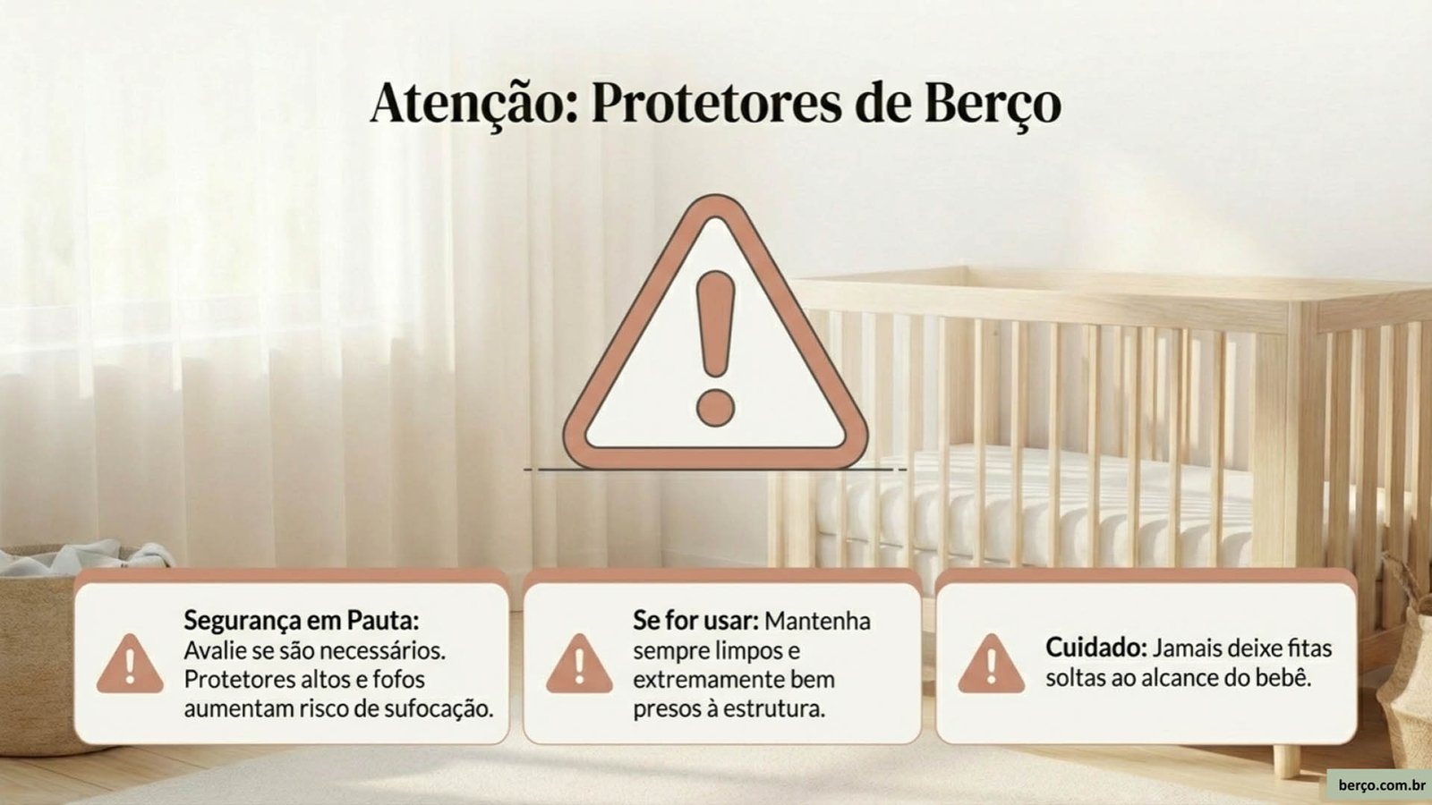- Avalie se eles são realmente necessários e seguros. Muitos protetores altos e muito fofos podem aumentar risco de sufocação.