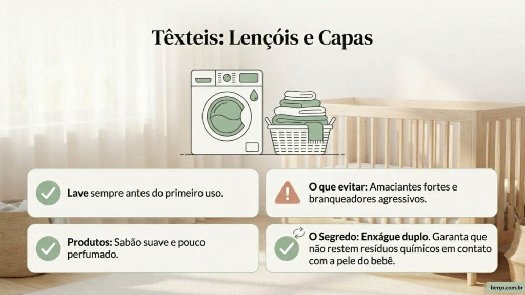 Lavagem de tecidos do berço (lençóis, capas, protetores)