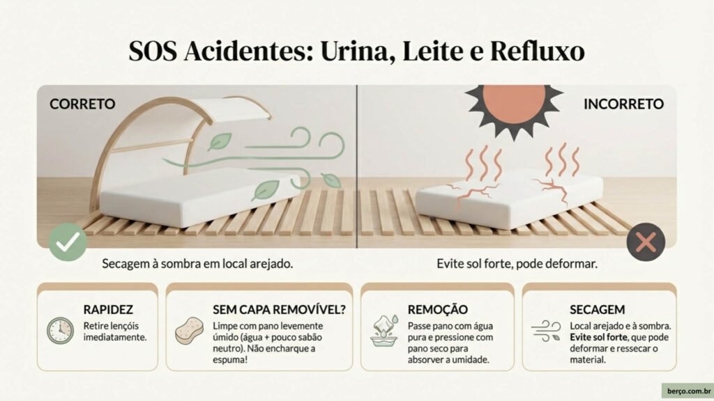 Importante: não encharque o colchão. Umidade interna favorece mofo e pode comprometer a estrutura.