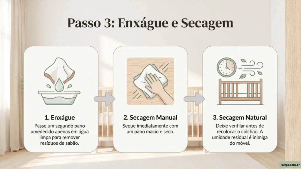 5. Enxágue com pano apenas umedecido em água limpa