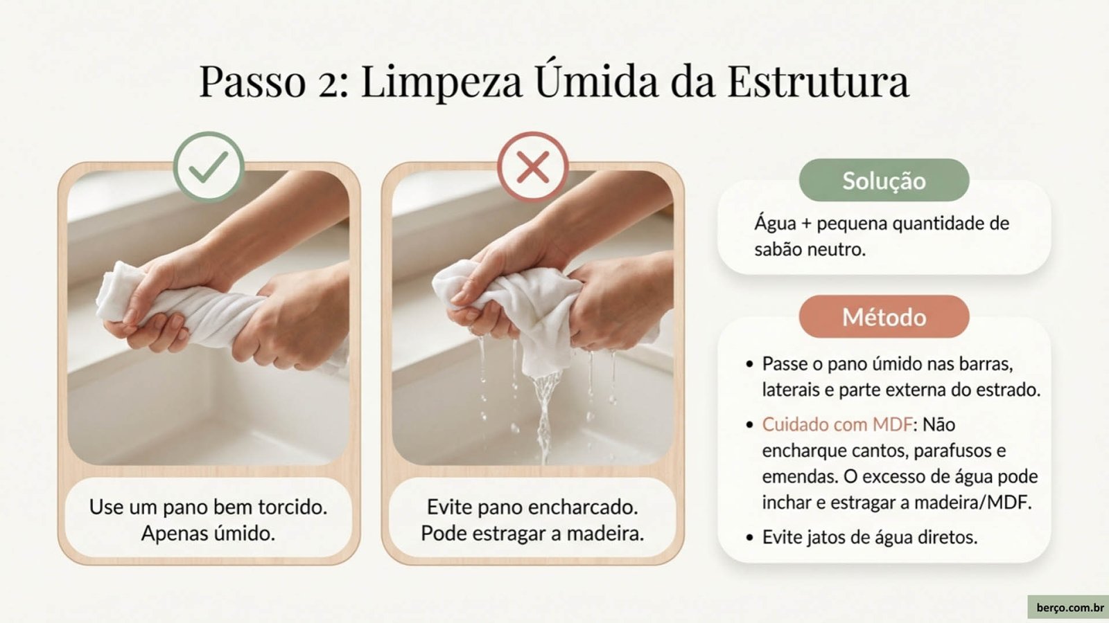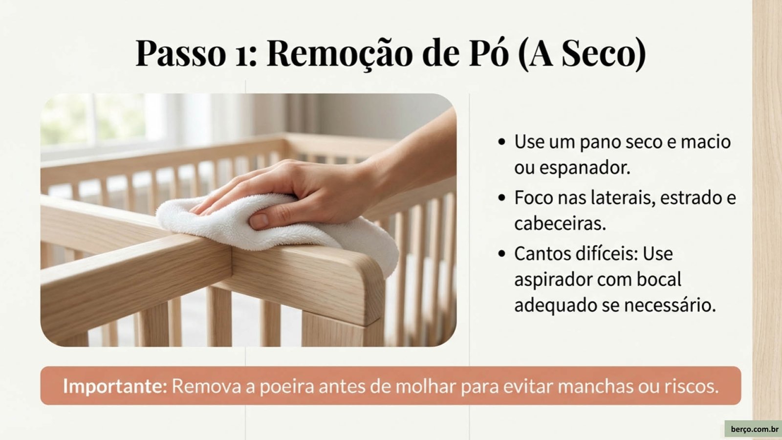 Como limpar a estrutura do berço (madeira, MDF ou metal)